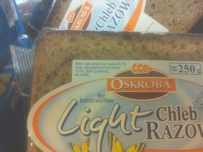 Z kolei Chleb razowy light z OSKROBY zaskakuje w tym gąszczu sztucznych dodatków.