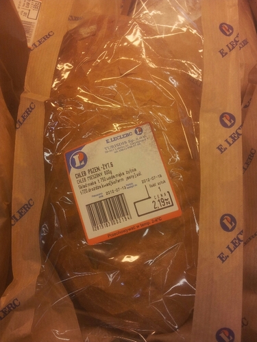 Weźmy jeszcze Mieszany chleb pszenno-żytni, również wypiekany z mrożonego (jak się domyślamy) ciasta.