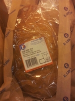 Zdarzyło mi się go kupić raz czy dwa i niestety, po kilku godzinach od ostygnięcia (niemal zawsze sprzedawany jest jeszcze ciepły) staje się niejadalny. Niesamowicie twardnieje i kruszy się, nawet przy dotknięciu. Są to cechy wypiekania pieczywa z mrożonego ciasta, a w tym przypadku jeszcze z dodatkiem kwasu bioferm jasny, cokolwiek to znaczy. Nie polecamy.